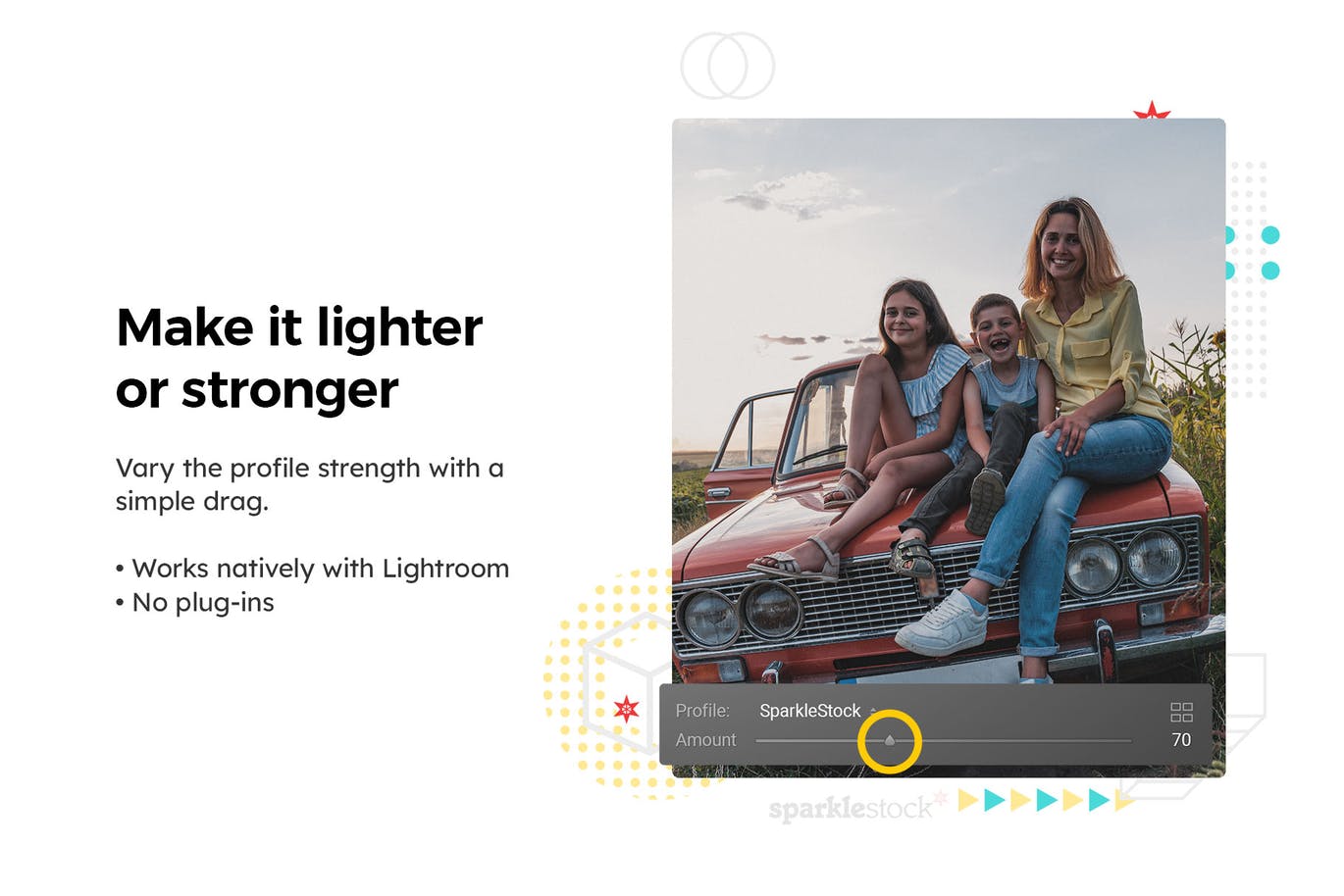 功能使用 SparkleStock 预设和 VOXCOLOR 算法增加您的工作流程,带来专业的结果。